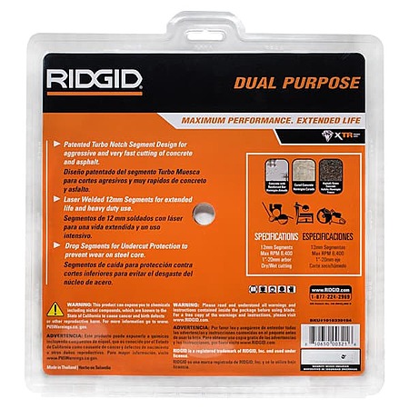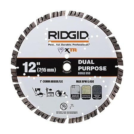 RIDGID 12 in. Masonry XTR Dual Purpose Cutting Segmented Rim Walk-Behind Diamond Saw Blade $55