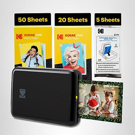 Kodak Step Instant Smartphone Photo Printer - 75 Sheets Bundle, Zink 2x3” Sticky-Back Photos -Black - $79.99