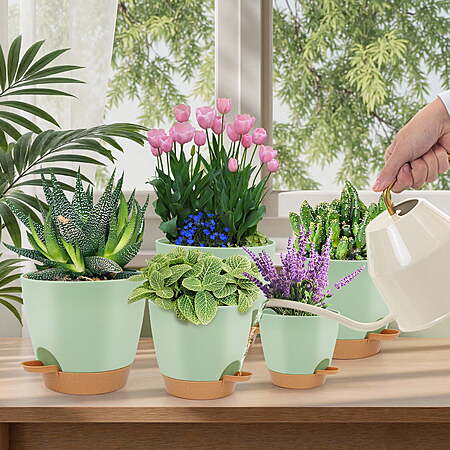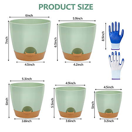 Model: PHANCIR 7/6.5/6/5.5/5 Inch Set of 5 Self Watering Plant Pots, Plastic Flower Pots for Indoor Outdoor Succulent with Nitrile Gloves, Green