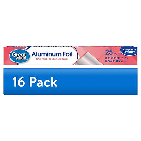 (16 pack) Great Value Aluminum Foil, 25 sq ft ($1.50 a roll) $24.06