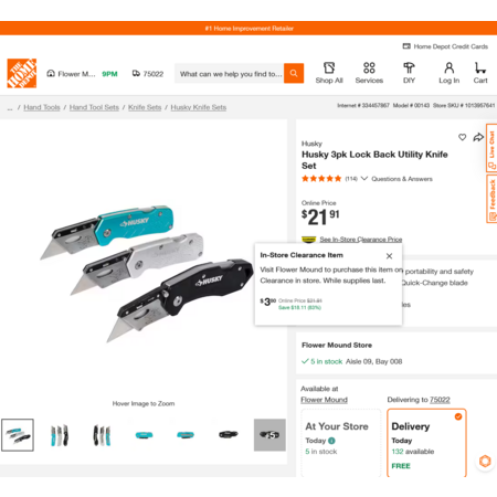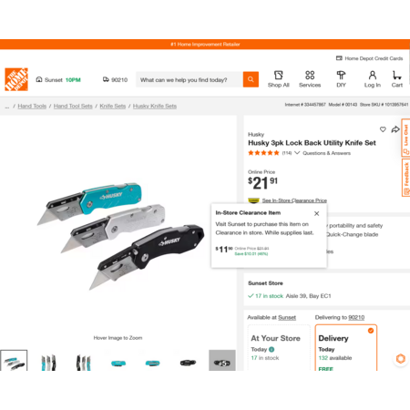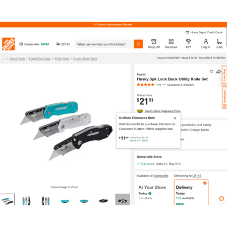 YMMV - Select Home Depot Stores: Husky 3pk Lock Back Utility Knife Set. In-Store Clearance $3.80 - $11.90