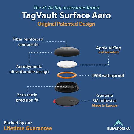 Elevation Lab AirTag (Gen 1 & 2) Adhesive Mount - TagVault™ - Waterproof AirTag Adhesive Mount 4-Pack $22.99, 2-Pack $15.99, Single $9.99