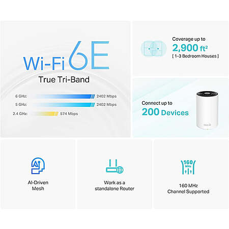 TP-Link: 3-Pack Wi-Fi 6E Tri-Band AXE5400 Mesh System (Deco XE75) + Dimmable RGBW Smart Light Bulb (L535E) $224.99 + Free Shipping