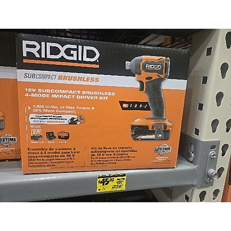 YMMV Ridgid 18v subcompact 4 mode brushless 1/4 driver kit with battery and charger $45.02 @HomeDepot B&M
