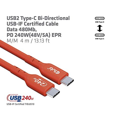 This is one of the longest USB-IF certified USB 2.0 480Mbps cables you can buy, and it's also 240W capable. Since it's certified, you know the resistance will be low and your USB 2.0 devices will work even at this extended length. Club 3D is a Netherlands-based brand with a good reputation and a handful of other certified cables.
