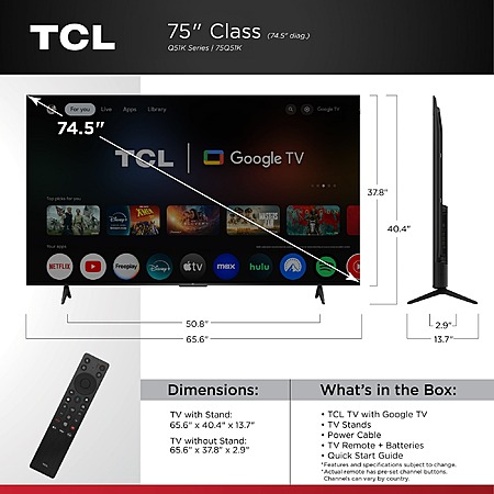 75" TCL QLED 4K UHD HDR 240Hz Google TV (75Q51K) $468 + Free Shipping