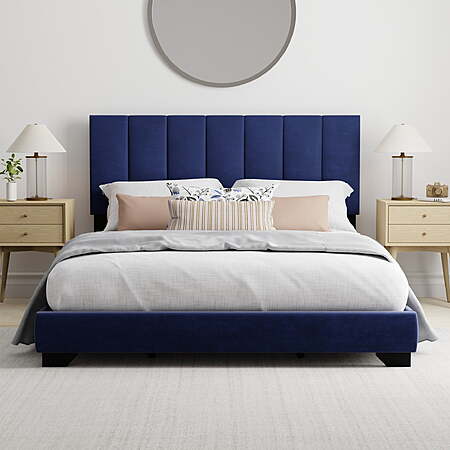 Reece Channel Stitched Upholstered Queen Bed, Sapphire Blue, by Hillsdale Living Essentials - $75