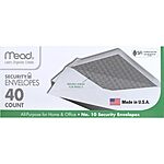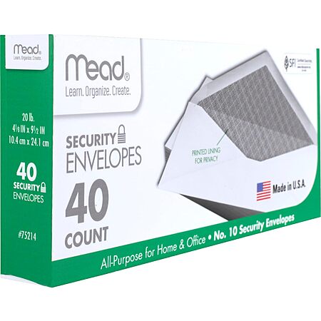 Mead #10 Envelopes, Letter Size, 4-1/8" x 9-1/2", Security Printed Lining for Privacy, Gummed Closure, Windowless, White All-Purpose for Home & Office Mail, 40 Count $1.08