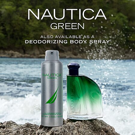 Model: Nautica Color Green Eau de Toilette for Men Woody Fougere Fragrance Notes of Ginger Geranium and Vetiver 1.6oz