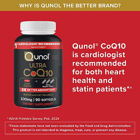 Qunol Ultra CoQ10 100mg Softgels- 3x Better Absorption, Antioxidant for Heart Health & Energy Production, Coenzyme Q10 Vitamins and Supplements, 3 Month Supply, 90 Count $21