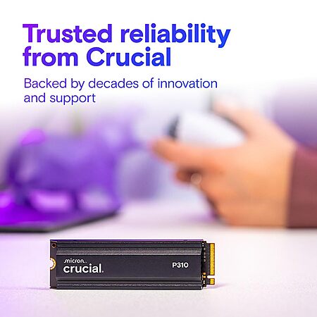 Model: Crucial P310 2280 1TB PCIe Gen4 NVMe Gaming PS5 SSD with Heatsink, Up to 7,100MB/s, PlayStation5, Laptop & Desktop (PC) Compatible, Solid State Drive - CT1000P310SSD5-01
