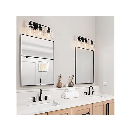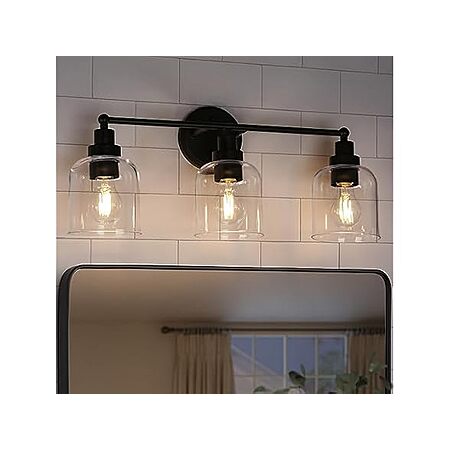 GEPOW Bathroom Wall Light Fixtures, 3-Light Black Vanity Light with Clear Glass Shade, Modern Farmhouse $28 FS PRIME WOOT