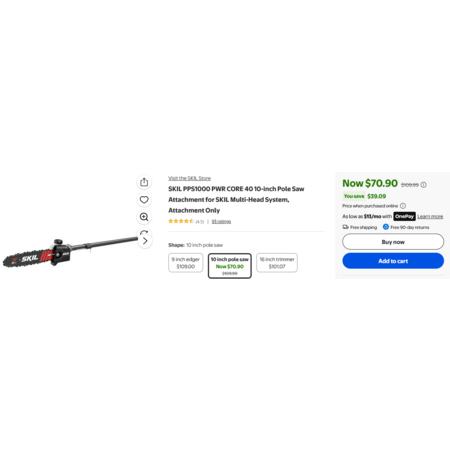 SKIL PPS1000 PWR CORE 40 10-inch Pole Saw Attachment for SKIL Multi-Head System, Attachment Only. Sold and shipped by Walmart.com. Free Shipping w/Walmart+ or $35+.