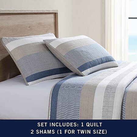 2-Piece Twin Nautica Medium Weight Quilt Bed Set w/ Matching Pillowcase (Galewood Blue) for