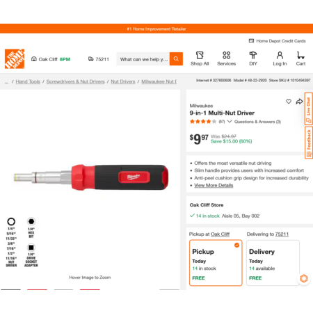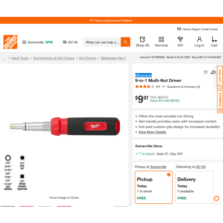 The MILWAUKEE Multi-Nut Driver offers the most versatile nut driving. The nut driver features 7 different nut driver sizes, a 1/4 hex key, and a 1/4" square drive. The slim handle provides users with increased comfort during fastening applications. The multi-nut driver's handle features an anti-peel cushion grip design for increased durability. The Multi-Nut Driver is backed by a limited lifetime warranty.