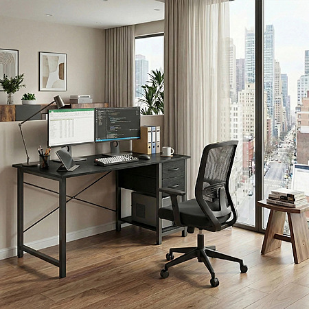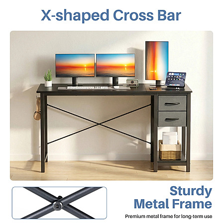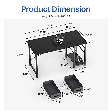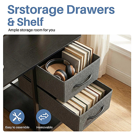- Ample Storage: This desk features two spacious fabric-lined drawers, an adjustable shelf, and a hook, providing generous storage for documents, office supplies, electronics, and more. Keep everything organized and within easy reach.