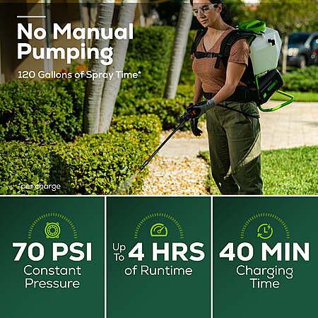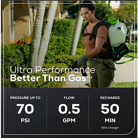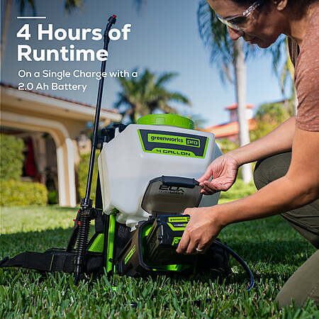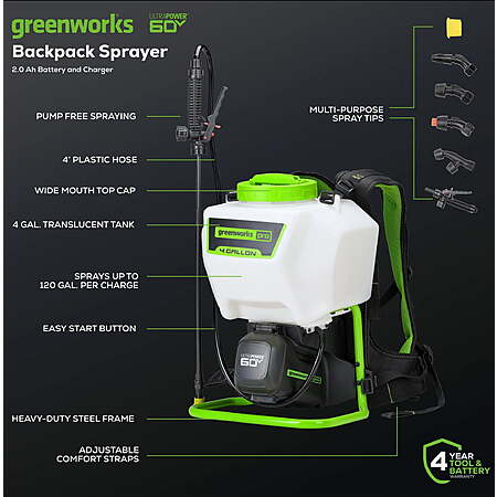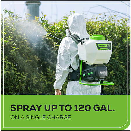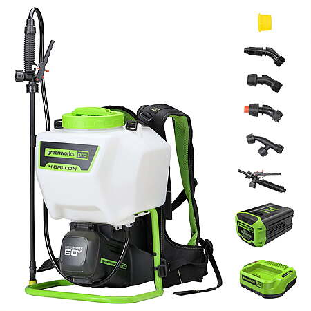 $147 Greenworks 60V 4 Gallon Cordless Battery Backpack Sprayer with 2.0Ah Battery & Charger 5301202