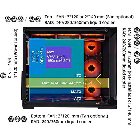 Built-in up to 5 hard disk drive bays (2 x 3.5-inch HDD and 3 x 2.5-inch SSD) with 7 PCI expansion slots to support a wide range of hardware expansion.