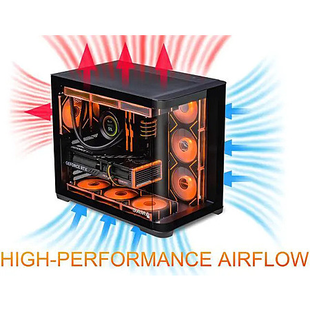 Model: SAMA 2851 ATX Mid-Tower PC Gaming Case, High-Airflow, Sturdy Curved Tempered Glass Front, 4 ARGB PWM Fan Pre-installed with Fan Hub, Black