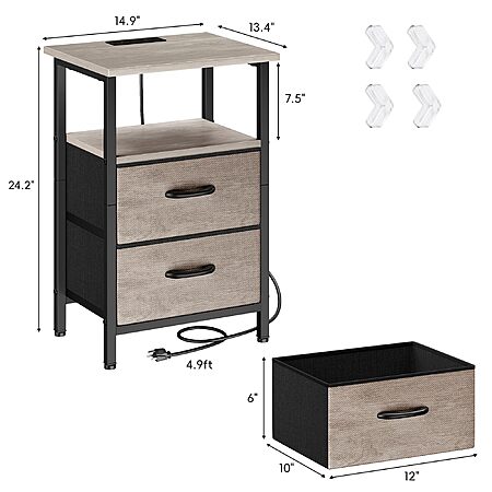 2-Piece Vagusicc Night Stand Bedside Table Set w/ USB Charging Station (Greige) $37.47 ($18.73 each) + Free Shipping w/ Prime or on $35+