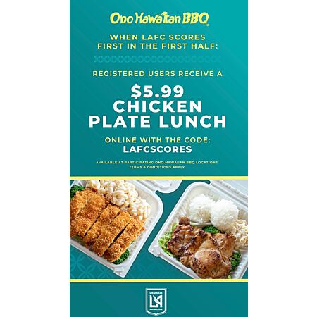 Receive a Chicken Plate Lunch for $5.99 with the code LAFCSCORES