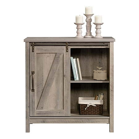 Looking to add a touch of rustic-inspired style to your home? Look no further! This accent storage cabinet from the Better Homes & Gardens modern farmhouse collection is everything you could ever want! It features a barn wood-styled sliding door that easily glides side to side so you can store and display an array of items ranging from your collection of novels and stacks of magazines to knick-knacks and photos of your family and friends. You can display the best and hide the rest! It also features two adjustable shelves that can be moved to different heights to create flexible options for items of all shapes and sizes. Its spacious top surface makes a great place to display additional home decor items or set your 39" TV so you can enjoy all your favorite shows and movies. Finished in rustic gray and detailed with stylish hardware and accents, this beautiful storage cabinet is just what your home needs.