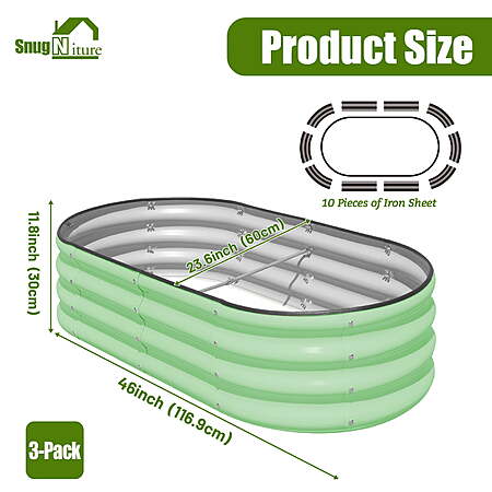 - 【SIZE】 Each SnugNiture raised garden bed measures 46" (L) x 23.6" (W) x 12" (H), with a set of three beds providing ample space for growing vegetables, flowers, fruits, and more.