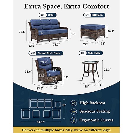 HILLGA Luxury Patio Furniture Set with 6-inch Thick Cushion, Outdoor Couch and High Back Swivel Rocker Patio Chairs $1399