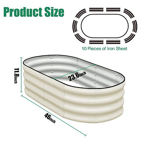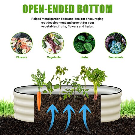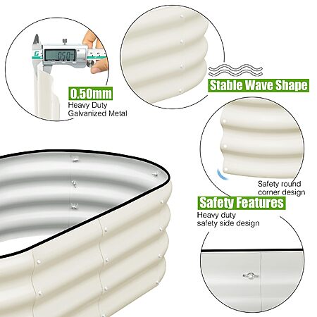 SnugNiture Galvanized Raised Garden Bed Outdoor, 2 Pcs 4x2x1ft Oval Metal Planter Box for Planting Plants Vegetables, White $45.59