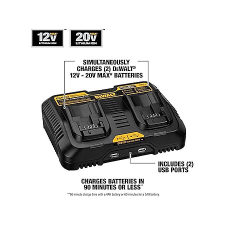 DEWALT DCB102 12/20V MAX Dual Battery Charging Station with 2-USB Ports $96