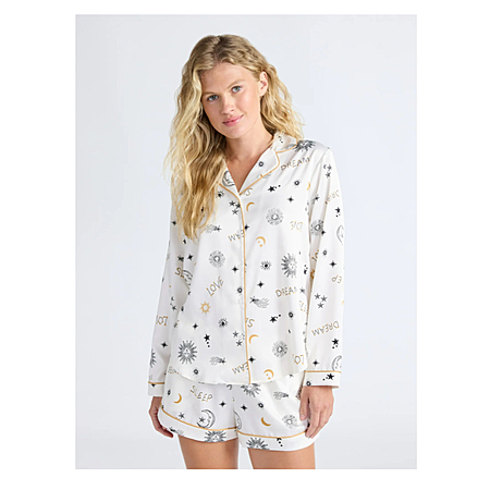 Joyspun Women’s Stretch Satin Notch Long Sleeve Top and Shorts Pajama Set, 2-Piece, Sizes XS-3X (Various) - from $10.28
