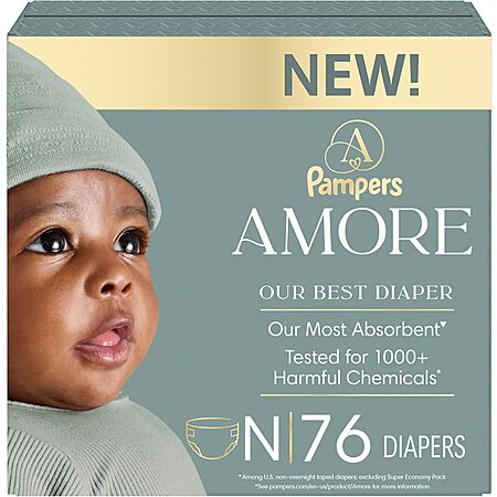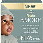 Pampers Amore, Size 0 (up to 10 lbs), 76 Count, Our Best Diaper – Hypoallergenic & Fragrance Free, Up to 100% Leakproof, Soft as Cashmere