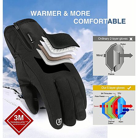 -10℉ Balhit 5-Layer Waterproof Winter Gloves w/ Touch Screen Fingers from $16.12 + Free Shipping w/ Prime or on $35+