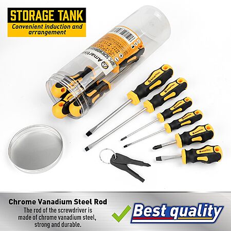 $9.49*:Amartisan 10-Piece Magnetic Screwdrivers Set, 5 Phillips and 5 Slotted Tips Professional Cushion Grip Screwdriver Set