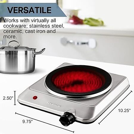 Amazon[amazon.com] has OVENTE Countertop Infrared Single Burner, 1000W Electric Hot Plate w/ 7.5" Ceramic Glass Cooktop for $22.99 - $5.75 when you 'clip' the coupon on product page = $17.24. Shipping is free with Prime or on $35+ orders.