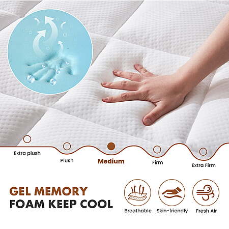 - UNIQUE DESIGN: Our mattresses are filled with 3D down alternative fillings for extra cushioning and softness. The cooling gel memory foam layer regulates body temperature and relieves pressure points under the shoulders, hips and legs. Stabilizing high-density base foam layer provides extensive support and keeps your body aligned. Allow you to enjoy a comfortable night's sleep.