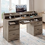 Bestier 59 in. Grey Computer Desk with Charging Station, 4-Drawers and 2-Open Storage Spaces, with Adjustable Bookshelf $188 FS HOME DEPOT