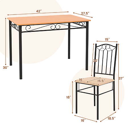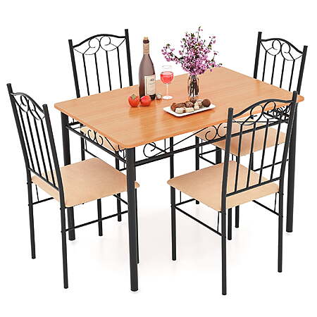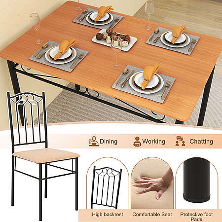 | Product Description: | Our five-piece table set is the ideal choice for you. Our kitchen table and chair set has a wooden color appearance and hollow carving design which is concise with exquisite. Placed it in your home not only has a strong decorative effect, but also very practical. It can not only be put in the kitchen but also in restaurant. You can eat, enjoy afternoon tea and entertain friends with it. Weather permitting, you can also move it to the yard to spend your leisure time. You don't have to worry about its quality. This set is made of steel pipe and MDF to maintain durability and firmness. Round corners are designed to protect your kid from bumping. In addition, the table can be easily moved and cleaned. Feature Steel frame makes the furniture sturdy and sturdy The structure is concise and equipped with instructions, convenient installation Padded seats make your feel more comfortable Large bearing capacity, chairs can bear 176 lbs and the tables can bear up to 132 lbs MDF desktop covered with PVC, the desktop is smooth, safe and easy to clean Round corner design can reduce wear and tear and also protect your child from bumping The elegant look is perfect for any home style Widely used in restaurants, kitchens, etc Sold in complete set, includes 1 table and 4 chairs Specification Color: as the picture shown Material: Steel Tube and MDF Table size:42''Lx27.5''Wx30''H Chair size:16''Lx18.5''Wx37''H Weight capacity of table:132Lbs Weight capacity of each chair:176Lbs Net Weight: 57lbs Package includes: 1 x Table 4 x Chair 1 x Instructions VERSATILITY- This table set is not only for home dining room, but also for the restaurant. Besides, these table and chairs are also suitable for outdoors if weather is good. The easy-matching style and color could get into many different situation you need. We bet that you would need it and look forward into it. WOOD-LOOK TOP- The wood-look top is kind of modern decor appearing in what you want to put. The dark brown wood-looking top is what makes the occasional group stand out. Transform your home decor into something exciting with this 5 pcs table set. What's more, the same style of tables and chairs could brings you the harmonious atmosphere at home. sturdy MATERIAL- Steel tubes, MDF boards with wood-look top keep the table sturdy and sturdy. And it's needless to worry about the sharp iron would scrape your floor, for there are 4 little pads under the table legs and chairs' to avoid scratching. Also this 5 pcs dining set table could kindly easy for moving and clean. COMFORTABLE PADDED SEAT- This simplified table is with 4 padded seat chairs which are suitable for your need of comfort. It cannot only offer you the soft sitting experience, but also when you sit on it is in winter, it could make you avoid feel cold. And its different thickness of the chair legs could make them more sturdy to hold. CUSTOMER SERVICE & GUARANTEE- With our clear manual, it's easy to assemble. If there is any questions please feel free to contact with us, our wonderful customer service team will response in 24 hours. If there is any part missing or damaged during shipping, please contact us first, we will solve the problem as the way you want (replacement at no charge or discount) |