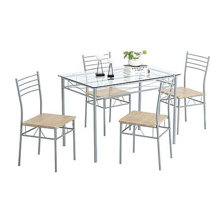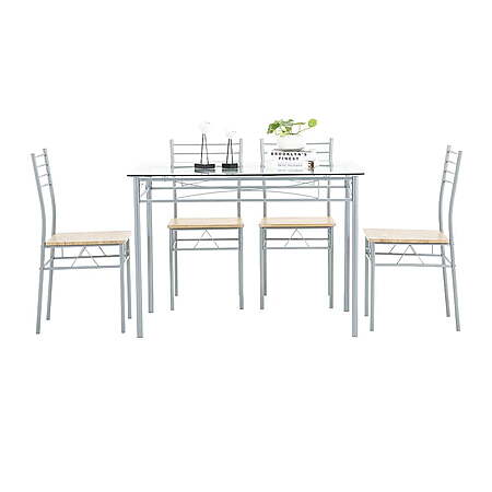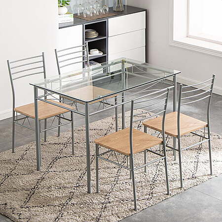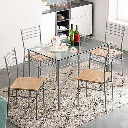 Ktaxon via Walmart.com has Ktaxon 5 Piece Dining Table Set Wood Metal Kitchen Breakfast Furniture with 4 Chair, Silver on sale for $99.99.