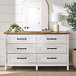 Model: Better Homes & Gardens Modern Farmhouse 56.85" Wide 6 Drawer Dresser, Alabaster and Light Honey Finish
