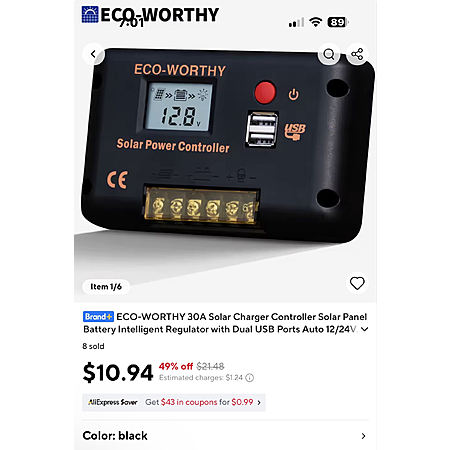 Ali Express has Eco-worthy 30A charge controller on sale for $10.94.