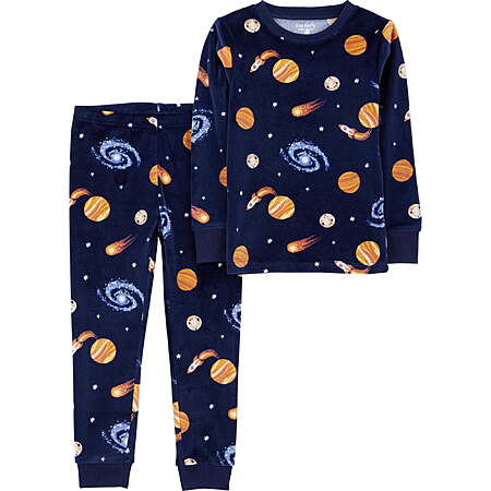 Cozy is in season and Carter's Child of Mine has just the right pjs for your little one. This 2-piece velour pajama set is designed for warmth and comfort. Featuring a long-sleeve top and matching pants, this snug-fitting set is perfect for chilly nights and lazy mornings. Made from ultra-soft velour, it's gentle on skin and extra cozy for bedtime cuddles. The festive winter prints add a playful touch your child will love, from snowflakes to cheerful critters. Whether it's a snow day or a sleepover, this pajama set keeps them warm in style all season long. These pajamas are made with the same trusted quality as Carter's and Standard 100 by OEKO-TEX, so it's certified clean.- Material: 95% polyester, 5% elastance