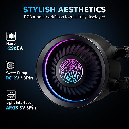 Model: darkFlash DNA240A AIO CPU Liquid Cooler, High-Performance Pump, ARGB Sync, PWM Fans, with Customizable darkFlash Logo Display, Compatible with Intel 1700/1200/115X, AMD AM4/AM5 (Black)