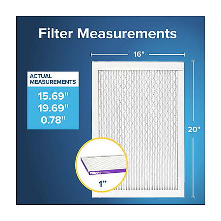 | Product Description: | Filtrete 16x20x1 MPR 1500 Air Filter, made by 3M, helps capture unwanted particles from your household air to contribute to a cleaner, fresher home environment. Designed with exclusive Filtrete 3-in-1 technology, including a high MPR 1500 and MERV 12 rating, your AC filter will help pull and capture countless microparticles – such as pet dander, smoke, bacteria and up to 54% of virus airborne particles (1) – while letting cleaner air flow through. Your Filtrete Filter will also capture large particles, including lint, pollen and household dust. This filter is also CERTIFIED asthma and allergy-friendly (2). Use a 3-month pleated 1-inch home HVAC filter in your furnace, air conditioner or HVAC system. For optimal performance of your heating and cooling system or HVAC system, change your furnace filter at least every 90 days. Note: For easy replacement reminders, create a change countdown in the Filtrete Smart App. Simply use the app to scan the barcode on your filter’s packaging, then choose 30, 60 or 90 days for your replacement countdown. When the filter’s life is up, you’ll get a notification to change your filter. The No. 1 Recommended HVAC Air Filter Brand (3), Filtrete’s Home Air Filters provide the breakthrough technology needed to change how we clean our air, by filtering out particles both large and invisible, to create a cleaner, healthier home for ourselves and our families. (1) Based on airborne MS2 virus testing. Initial efficiency. (2) As outlined in report ASCR: 1246-01. (3) Based on the 2022 Ipsos US Brand Health Study of Residential HVAC Air Filters. MAKE YOUR HOME YOUR SANCTUARY: 1-pack of 3-month pleated Filtrete 16x20x1 MERV 12 MPR 1500 AC Furnace Air Filter helps capture unwanted particles from your household air to contribute to a cleaner, fresher home environment EXCLUSIVE TECHNOLOGY: Designed with Filtrete 3-in-1 technology to pull in and trap unwanted particles, allowing cleaner air to flow through COUNTLESS MICROPARTICLES: With a 1500 MPR and MERV 12 rating, as well as a 54% small particle capture rate (1), your Filtrete Filter will help capture many microparticles from the air passing through it CERTIFIED: This furnace filter is CERTIFIED asthma and allergy-friendly (2) and helps capture dust, lint and other allergens in your household air VERSATILE USES: Works for changing the air filters in your furnace, air conditioner/heating system or HVAC system CHANGE YOUR FILTER OFTEN: For optimal performance, make sure to change your filter at least once every 90 days SMART APP: Use the Filtrete Smart App (iOS or Android) to set 30-, 60- or 90-day reminders to change your air filter MOST TRUSTED: Filtrete Brand is North America’s most trusted brand of HVAC Filters, based on 2024 Sago US Brand Health Survey of Residential HVAC Air Filters |