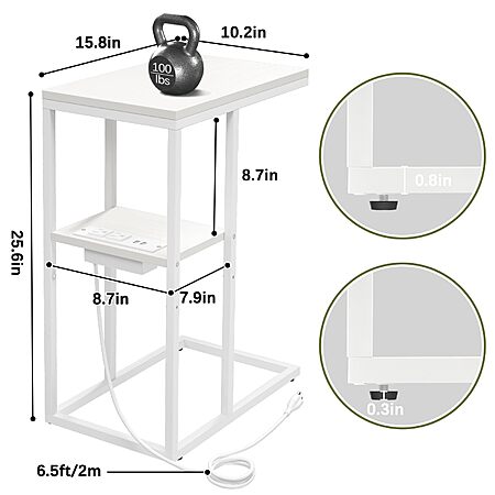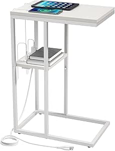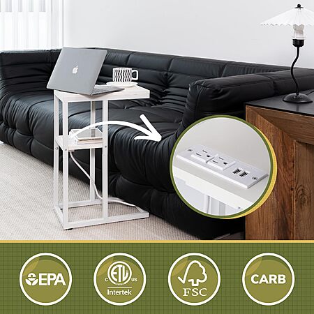 [Prime] 25.6" Yoobure C Shaped End Table w/ Charging Station (White) $14.99 + Free Shipping