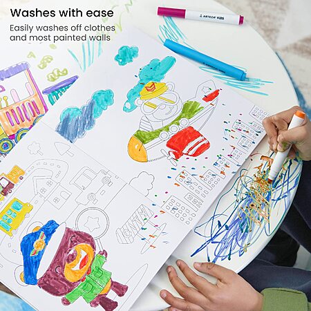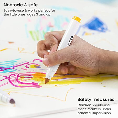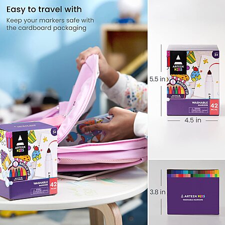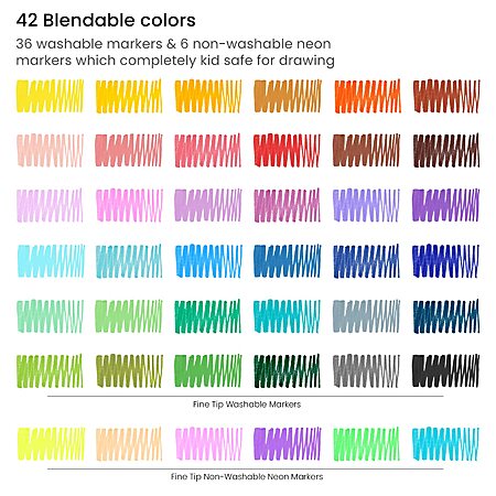 Model: ARTEZA Kids Broad Tip Washable Markers, 42 Bright Colors, 36 Washable Marker Pens and 6 Non-Washable Neon Pens, School Supplies for Kids Ages 3 and Up