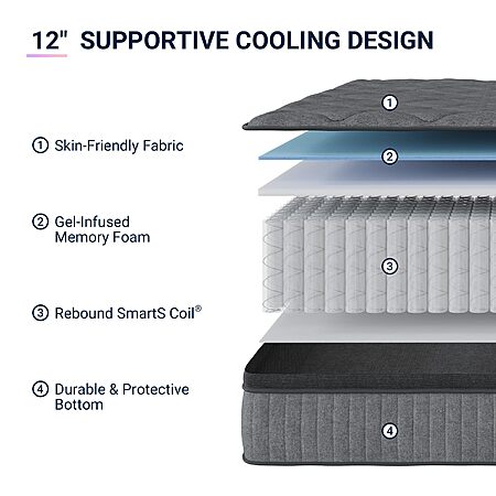 Avenco 12" Medium Firm Hybrid Mattress (Queen) $130 + Free Shipping
