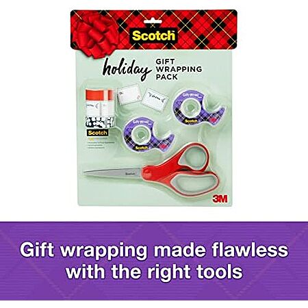 Amazon[amazon.com] has Scotch Gift Wrapping Kit (Scissors, Invisible Tape, Decorative Tape, Labels) for $6.17. Shipping is free with Prime or on $35+ orders.