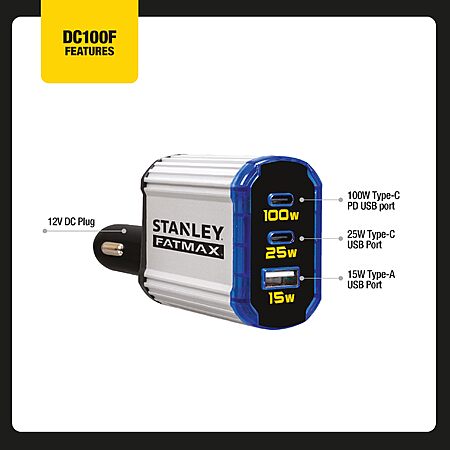 STANLEY [amazon.com]DC100F 100 Watt Power Inverter with Dual USB-A and USB-C Ports $14 Shipping Free w/prime.