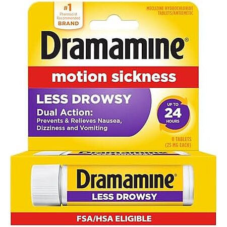 Amazon [amazon.com] has 8-Count Dramamine Less Drowsy Motion Sickness Relief Tablets for $2.99 - 25% when you 'clip' the coupon on product page - 5% when you check out via Subscribe & Save = $2.09.